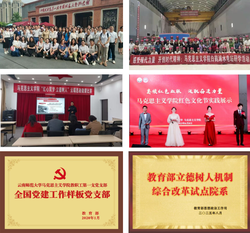 学院党委坚持不懈用党的创新理论凝心铸魂,牢牢把握育人方向,擦亮育人底色。以“红心铸魂工程”为抓手,系统构建“一引领二融入三抓实四做强”党建引领模式,持续夯实思想政治根基。深入实施“对标争先”计划,扎实推进基层党建质量提升,优化党组织设置,推动师资队伍建设与党建骨干力量培养深度融合,设立党员先锋岗和攻关项目,常态化开展“四个一”红色主题活动(看一场红色电影、欣赏一幅(首)红色经典艺术作品、分享一个红色故事、读一篇马克思主义经典文献),探索形成“党建+团队建设+人才培养+学术研究”的复合型教师党支部建设新路径。严把党员发展质量,规范组织生活。探索党员发展“一学、二谈、三审、四育、五看、六评”质量管理体系。全面推行主题党日活动“七有”制度,新发展思政课教师党员6名。着力从党的建设引领教学科研正确方向、教学科研发展厚植党的建设底蕴双重维度,探索创新党的建设与专业、学科建设深度融合的长效机制,成立党史党建研究所,组织骨干力量承担云南省党的建设重点调研课题,推动党的建设与专业学科建设协同发展。深耕红色资源,打造育人品牌。充分挖掘西南联大红色资源,推进红色文化课程资源建设。持续举办“红色文化节”“红歌赛”“红色诗歌朗诵比赛”等活动,开设“红色大讲堂”,组织“红心筑梦∙立德树人”云端思政微课比赛,建设“红心向党”党员学习室,组建“青马研习社”红色宣讲团,连续四年组织学生党员赴云南扎西、中共一大旧址、井冈山等地开展“红心向党”大学生党员实践教育。精心培育“沿着总书记的足迹”红色研学品牌,形成“一体二维三结合”的工作模式。通过系统谋划和整体推进,学院党建育人成效取得开创性进展,学院获批教育部立德树人机制综合改革试点院系,1个党支部完成“全国党建工作样板支部”创建验收,2个党支部获评省委教育工委“一流党建示范党组织”。