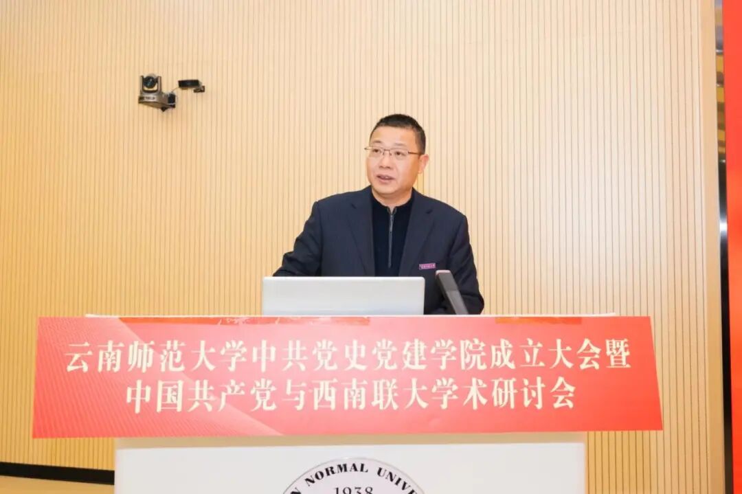 云南师范大学党委书记张祖武在致辞中指出成立中共党史党建学院是学校牢记总书记嘱托、传承联大精神的有力举措,是学校服务边疆地区党建工作的现实需要,更是学校响应中央号召推进学科建设的关键之招。他对学院建设提出几点希望:一是坚持“姓党为党”,把牢正确的政治方向。研究阐释党的创新理论、编写教材、课堂教学等环节严把政治关,确保学院成为坚持党的领导、传播真理力量的坚强阵地。二是突出“特色立院”,打造云岭红色研究高地。学院要立足边疆实际,聚焦“边疆党建”“民族团结党史”等特色方向,构建本硕博贯通的人才培养体系,力争建成省内领先、国内知名的特色学科。三是强化“铸魂育人”,培养堪当重任的时代新人,注重发挥西南联大旧址“活教材”的作用,让红色基因真正融入青年血脉。四是凝聚“全校合力”,为学院建设提供坚强保障。学校党委将把学院建设纳入“十五五”发展规划和“双一流”创建重点任务,在政策、经费、人才等方面给予倾斜支持,构建“大思政”育人格局,努力培养有理想、敢担当、能吃苦、肯奋斗的新时代好青年。