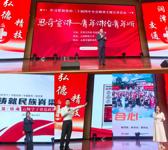 宣讲活动的圆满成功生动表明,云师青年正自觉将个人思考与国家发展蓝图相结合,深刻领会党的二十届四中全会精神,以各自专业领域的探索与实践,为扎实推进中国式现代化建设贡献青春力量。此次宣讲团成员均为我校2025年“启思・筑魂——云师学子讲思政课”教学比赛决赛获奖选手,是赛事成果转化与延伸的生动体现。