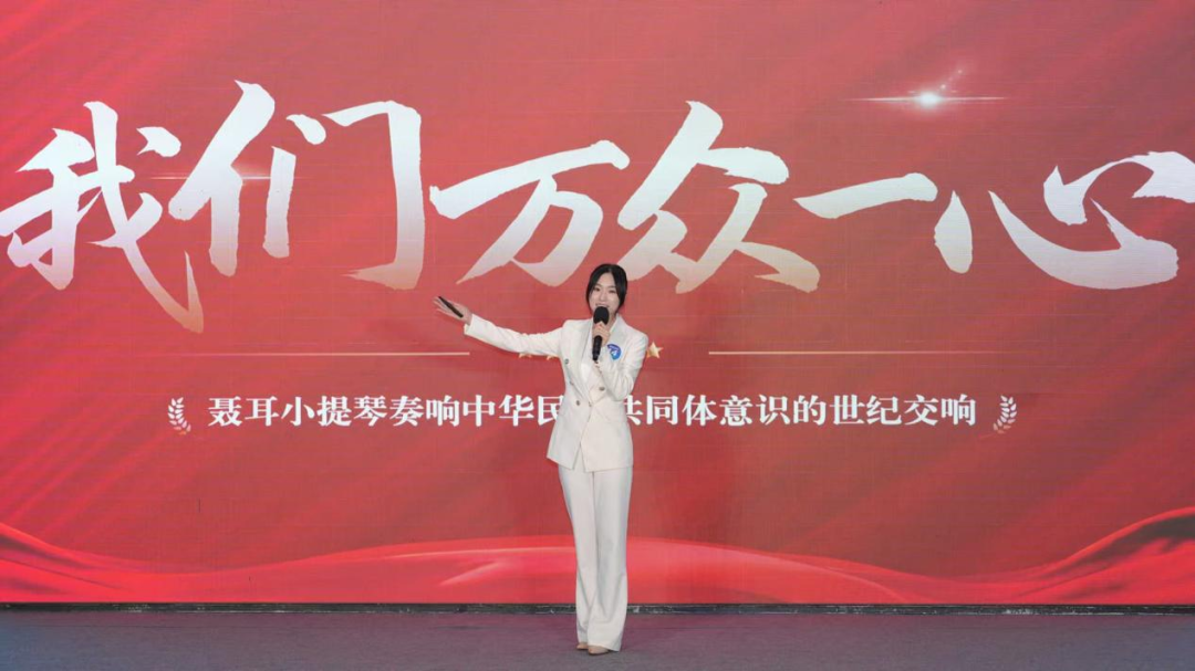 我院学生张茜以《一琴一曲铸中华》为题参赛,以“国宝在魂不在器”为点睛之笔,深情讲述聂耳小提琴背后的故事,让乐器所承载的爱国情怀与团结力量穿越时空、直抵人心。其讲解既精准呼应“铸牢中华民族共同体意识”的赛事主题,更将宏大的民族精神与时代价值,通过“一把琴、一曲歌”的具象载体变得可感可知。