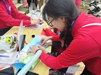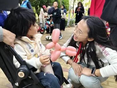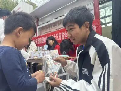 活动当日,社区广场暖意融融、热闹非凡,身着红色院服的马院学子们早早抵达现场,有条不紊地搭建活动场地、摆放手工材料与宣传物料,以饱满的热情和昂扬的精神状态,迎接前来参与活动的社区儿童。此次志愿服务紧扣社区实际需求,精心设置了趣味手工互动、创意气球DIY、两大主题板块,兼顾趣味性与教育性,既为青少年儿童带去欢乐,也让雷锋精神在社区中焕发活力,让志愿服务既有温度又有深度。