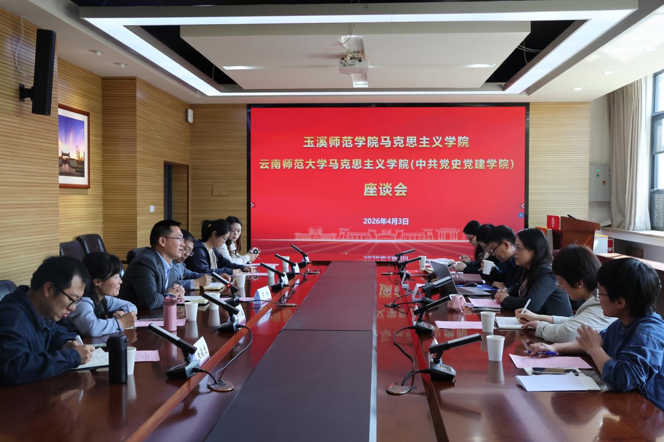 为加强院际交流合作,分享育人经验,凝聚工作合力,4月3日,马克思主义学院(中共党史党建学院)与玉溪师范学院马克思主义学院在明德4号楼322会议室召开交流座谈会。双方围绕党建引领、学科建设、教学科研、人才培养及大中小学思政课一体化建设等议题开展深入交流。玉溪师范学院马克思主义学院党委书记罗辉,副院长杨少英、邱国成及相关科室负责人;我院党委书记伏云辉、院长张黎波及班子成员、相关科室负责人参加座谈,座谈会由伏云辉主持。
