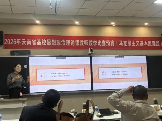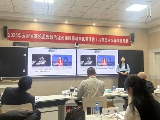 为深入贯彻落实习近平总书记关于思政课建设的重要论述,深化新时代高校思政课改革创新,全面提升思政课教师教学能力与育人水平,4月17日,2026年云南省高校思想政治理论课教学比赛“马克思主义基本原理”组预赛在我校成功举办。