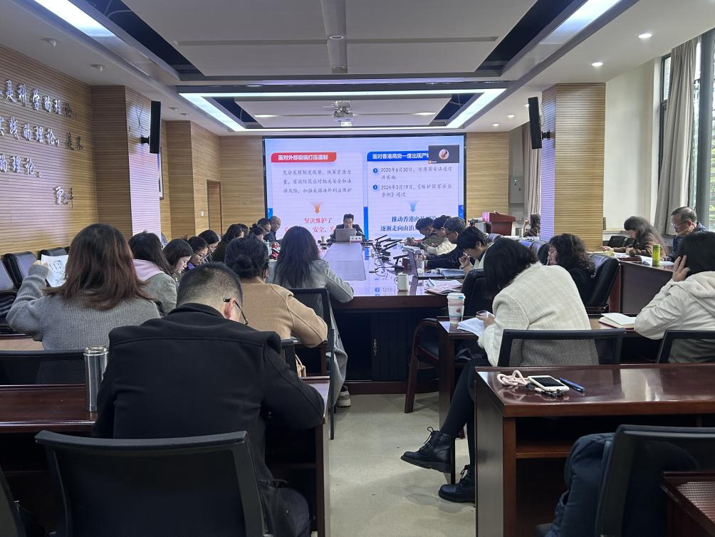 为深入贯彻党的二十届四中全会精神,学习平安中国建设的战略部署与实践成就,传承中国共产党领导下的社会治理智慧,主动回应人民群众对安全福祉的新期待,破解发展中的风险挑战,增强平安建设的全民参与感与行动自觉。2025年11月6日,云南师范大学马克思主义学院在明德4号楼322会议室举办了2025年秋季学期“形势与政策”课第三讲集体备课会,围绕“聚焦建设更高水平平安中国”展开专题研讨。备课会特邀云南省社会科学院马克思主义研究院副院长、研究员、博士张德兵担任主讲,“形势与政策”教研室全体教师、部分2025级研究生参加,备课会由教研室主任兰青松主持。