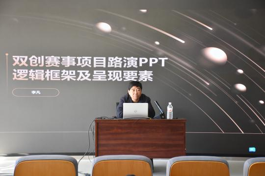 讲座邀请联合国世界非物质文化遗产保护基金会特聘专家,长期从事科研成果转化、中小企业科技孵化工作的李凡老师担任主讲。他从国家创新驱动发展战略的高度,阐述了大学生参与创新大赛的重要意义,深入解读大赛规则,系统梳理赛事赛道、评审细则与备赛要点。更以其亲自参与评审的各项赛事为蓝本,进行了一场生动的“解剖麻雀”式教学。通过对典型案例的层层剖析,将抽象的竞赛规则转化为具体可感的实战策略,幽默风趣的语言、深入浅出的讲解,使得复杂的创新创业知识变得清晰易懂,极大地激发了同学们的学习兴趣。